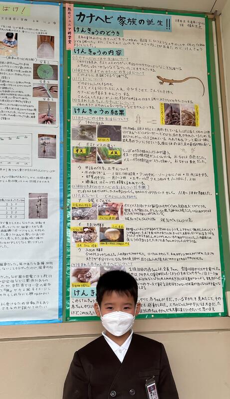 自分の興味関心のあることにしっかり向き合い(児虎さんの場合は「カナヘビ」)、課題意識をもって粘り強く研究を続け、記録を蓄積し、研究内容や結果考察を筋道立てて丁寧にまとめた今回の作品は、まさに秀逸でした。他にも、郡市科学展で優秀な成績をあげ、推薦を受けて県科学展へ出品された児童もたくさんいました。
