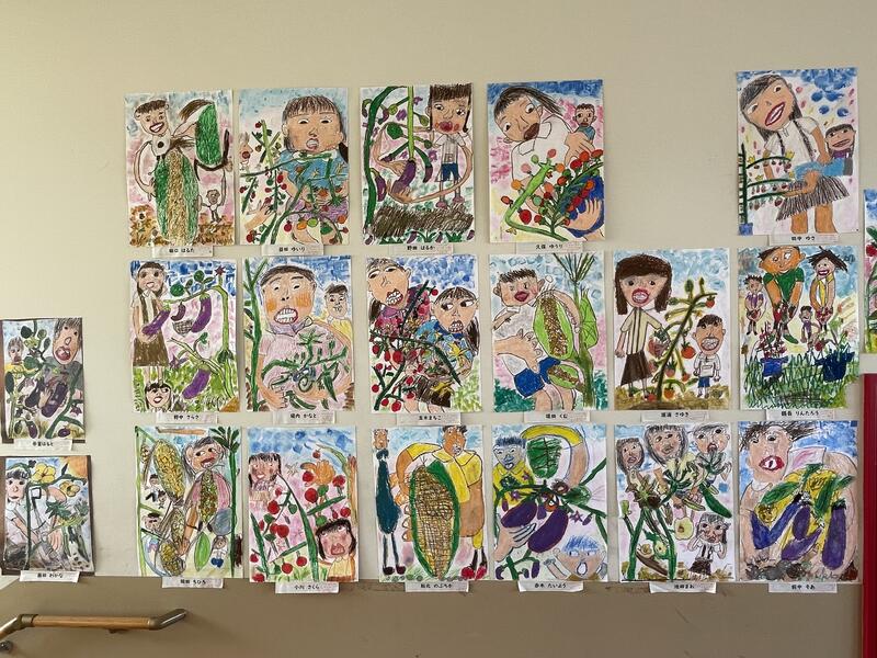 中央廊下には、昨年秋に取り組んだ「文化展」の絵画作品が掲示してあります。