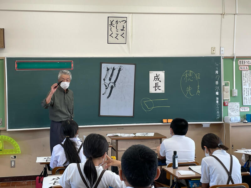 先生が書かれる一筆一筆を子供たちは集中して見ていました。