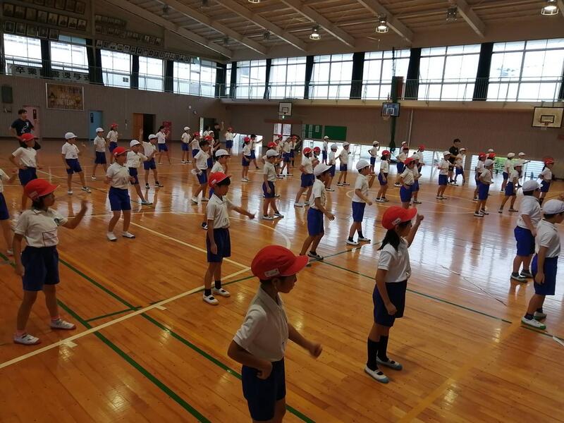 高学年はみんなで作った校歌フラッグや楽しく踊る表現の練習に取り組んでいます。