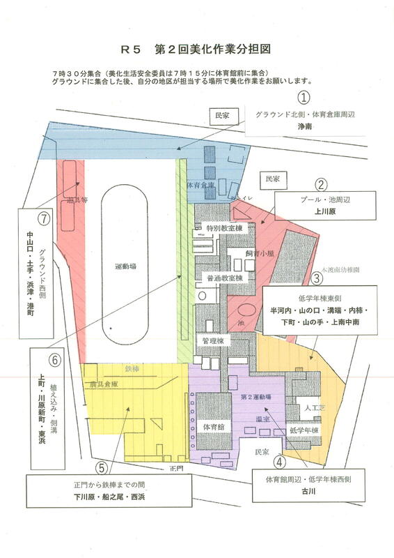 9月10日(日)の美化作業は大変お世話になります。地区ごとの作業場所につきまして、下記添付資料にてご確認ください。当日もよろしくお願いします。なお、雨天延期日は9月17日(日)になっておりますので、延期の際も是非ご協力をお願いします。