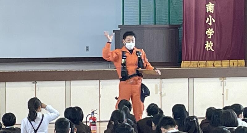 消防署の方をお招きし、子供たちに火事の未然防止や、もしものときの対応についてお話していただきました。
