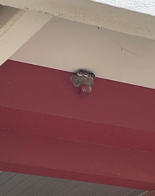 最近、管理棟校舎の事務室近くの軒下に、ツバメの巣を見つけました。
