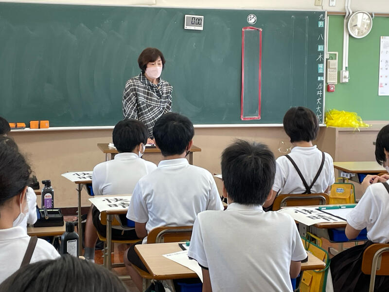 今日は、6年生の毛筆指導に村田様、5年生の毛筆指導に平井様に来校していただき、指導をしていただきました。