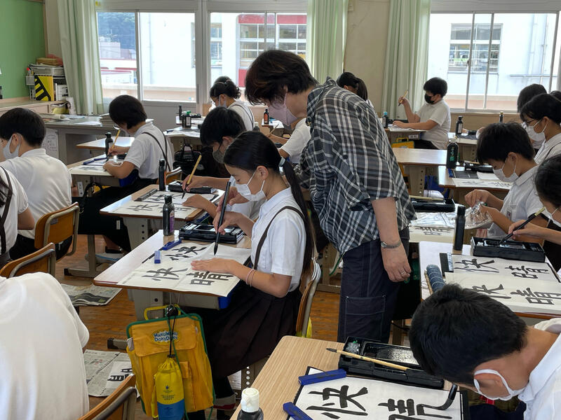 先生が書かれる一筆一筆を子供たちは集中して見ていました。