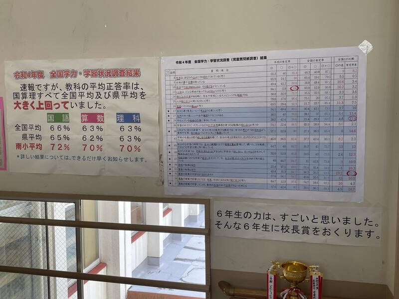 夏休み中に、今年度の「全国学力・学習状況調査」の結果がわかりました。教科(国語・算数・理科)別の結果としては、昨年度に引き続き、全国及び熊本県の平均値を大きく上回る結果となりました。