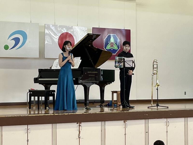 10月1日(金)の午後から本校体育館で芸術ふれあい出前コンサートが開かれました。今回は、4〜6年生がコンサートに参加しました。コンサートには、五和町鬼池出身の山本亜矢子さん(ピアノ)と南小出身の辻田雅史さん(トロンボーン)のお二人が出演してくださいました。