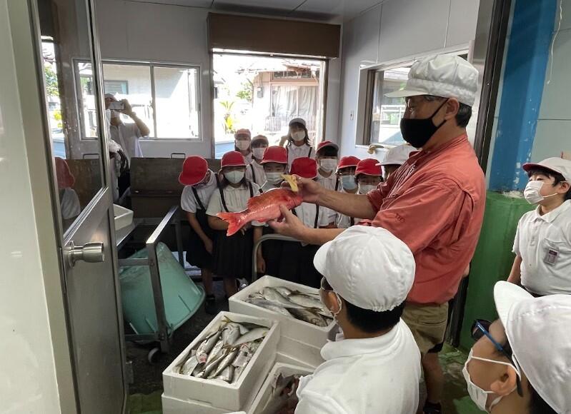 10月29日に天草市役所農業振興課の柴田様、高橋様、11月5日に水産振興課の糸田様をお招きし、天草の農業や水産業についてお話を伺いました。天草の農業については、様々な種類のみかんの栽培がさかんなことや、ドローンなどのロボットの活用が進んでいることなどを学びました。また、水産業については、季節ごとの旬の魚や、養殖や定置網漁などの様々な漁法について学びました。特に子どもたちは、農作物や魚などの「値段」に興味をもっていたようです。天草の自然とそれを支える方々の努力に触れ、子どもたちにとって貴重な学びの機会となりました。