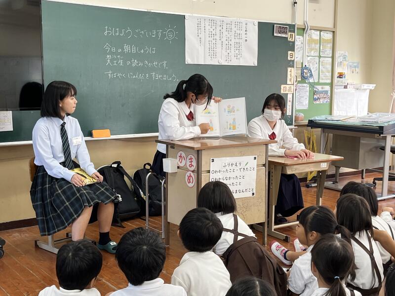 この日は、朝から天草工業高校の生徒さんが多数来校し、各クラスに入って読み聞かせをしてくれました。