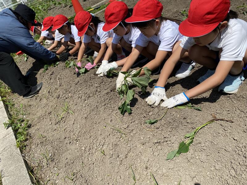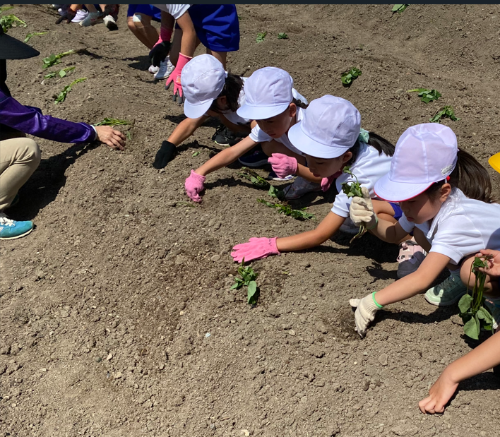 6月5日(水)、子どもたちが楽しみにしていた芋の苗植えをしました。張り切って体操服に着替え、軍手を付けて、いざ畑へGO!