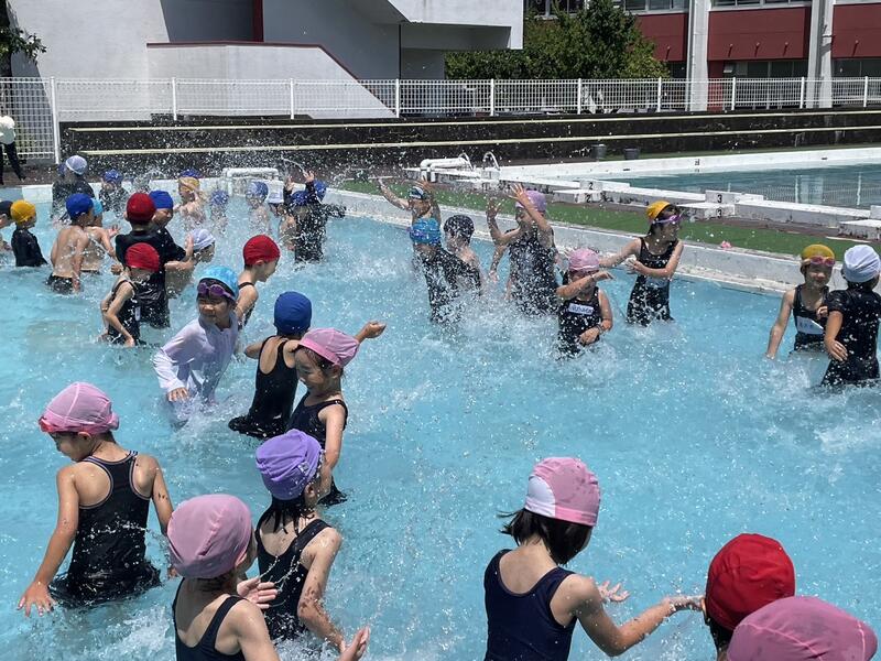 18日(火)は、1年生が待ちに待ったプール開きでした。数日前から、「プールはいつですか?」「早く入りたいです!」とこの日を楽しみにしていた子どもたち。
