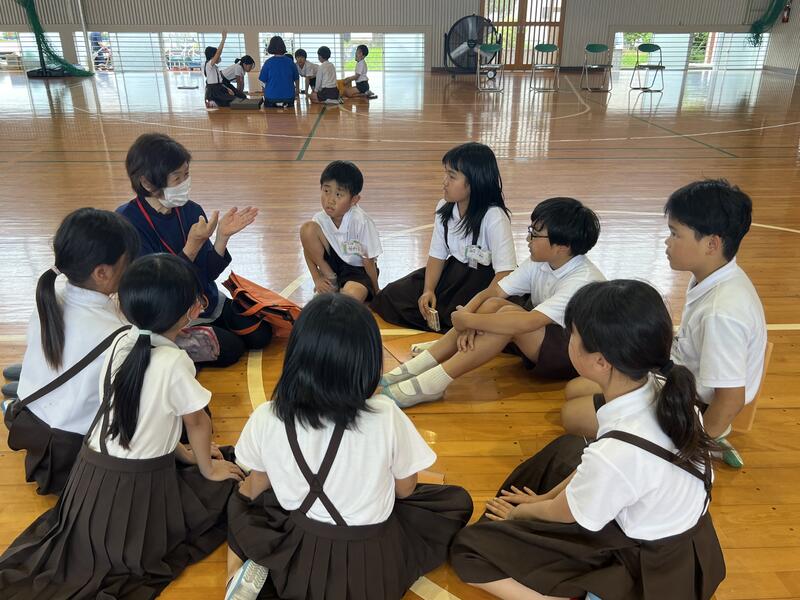 ☆4年生☆ 総合的な学習で本渡南地区の民生委員さんとの交流会を開きました。ミニゲームをしたり仕事内容についてインタビューしたりして、楽しい時間を過ごしました。