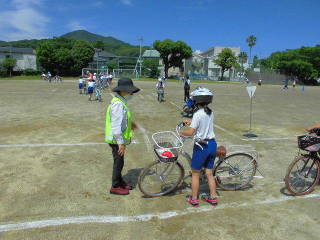 交通指導員の方から、自転車の乗り方や運転のルールなどについて学びました。