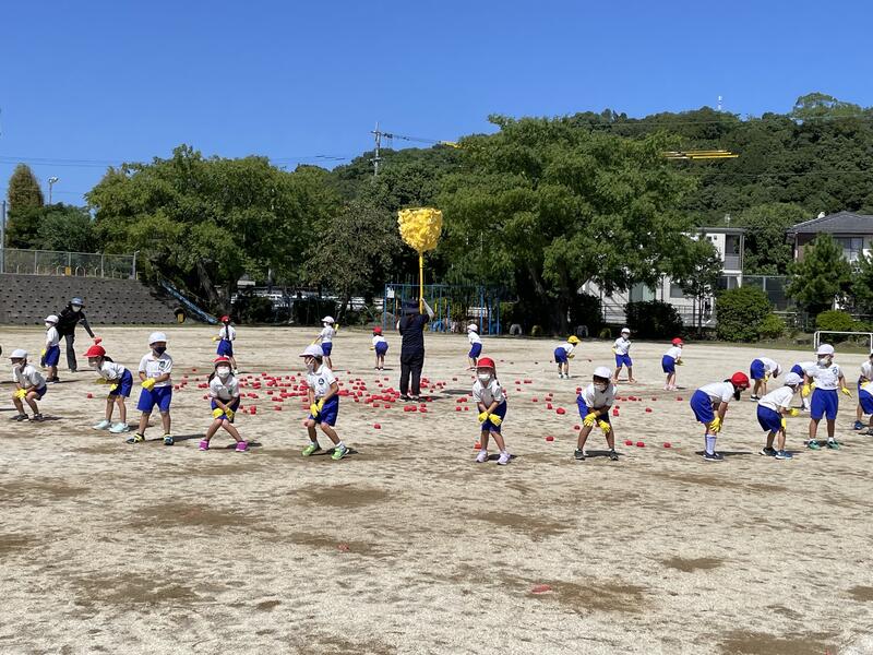運動場では,1年生が「玉入れ」の練習をしていました。恒例のダンス付きの種目です。かわいらしいダンスに真剣な玉入れ勝負!毎年好評の種目です。