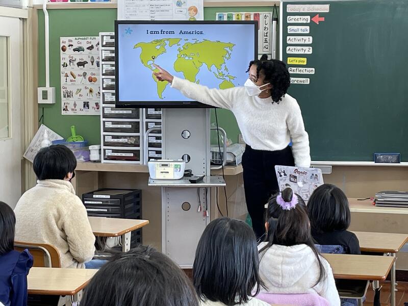 自己紹介の後は、ゲームを行ったり、タブレットを使ってクイズに答えたり、ジェンガをしたりなどなど、時間が経つにつれて、ALTの先生たち、子どもたちの緊張もとけ、笑顔いっぱいで楽しんでいました。