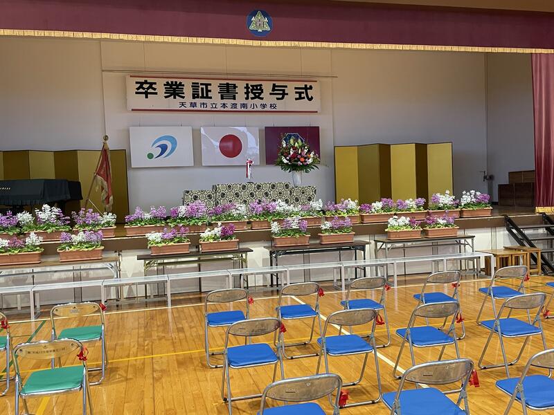 明日は、いよいよ卒業式です。本日午後から5年生と全職員で式の準備を行いました。