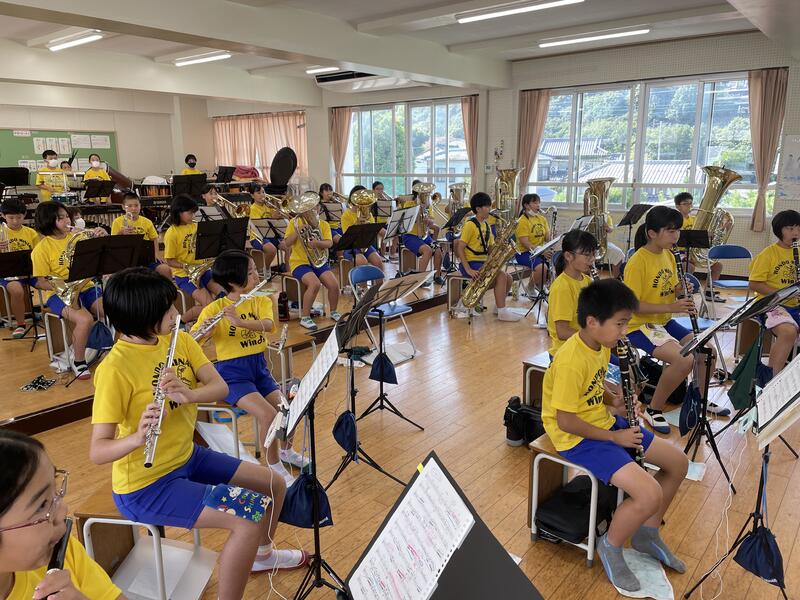 4年生以上で楽団を組んで出場します。これまでに、外部指導者として天草中学校の佐佐木先生(音楽教師)を二度お招きして丁寧に指導いただきました。