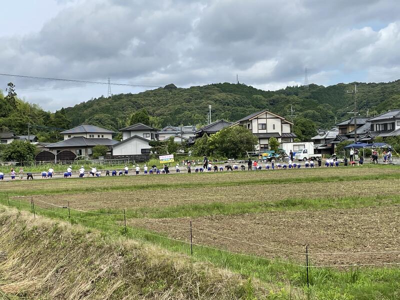 本日(6月17日)の1.2.3校時に、5年生の子供たちが社会科の学習の一環として「田植え」の体験を行いました。
