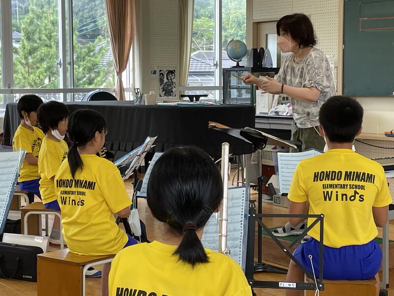 夏休みも返上して、本渡南小吹奏楽部(本校で唯一の部活動)が、猛練習をしています。今月24日に熊本市の県劇ホールで開催される「熊本県吹奏楽コンクール」出場に向けての練習です。