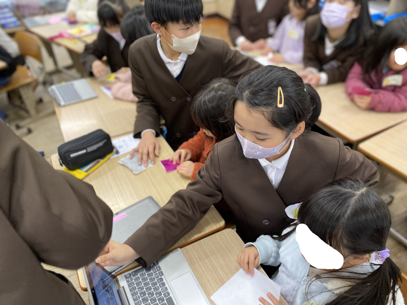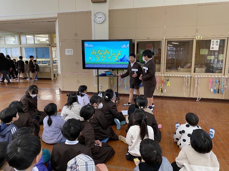 2月7日に新一年生体験入学がありました。5年生が、学校案内とレクレーションを行いました。