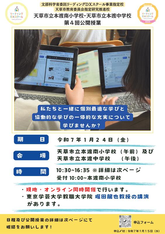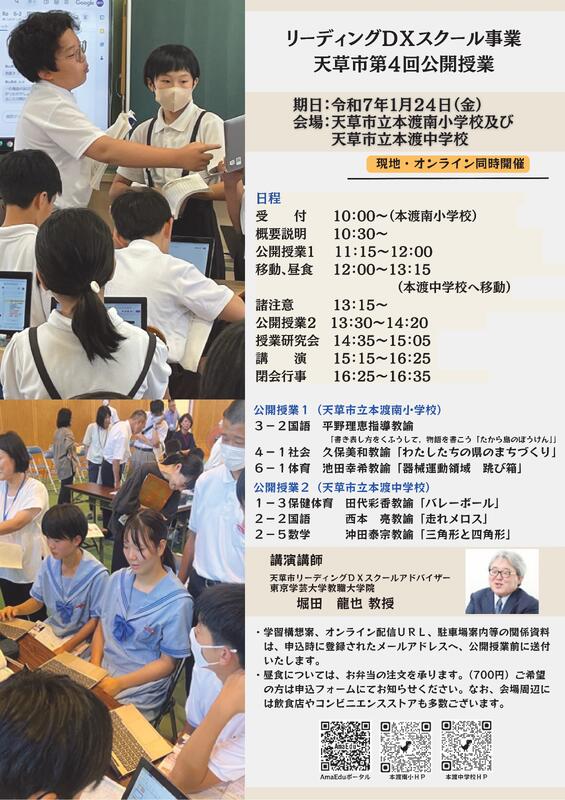天草市第4回公開授業参加申込         申込〆切:令和7年1月15日(水)