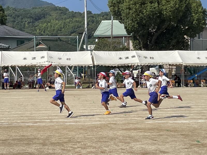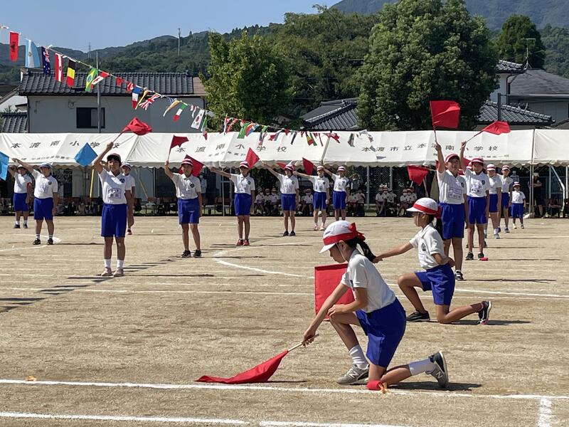 秋晴れのもと、本渡南小学校の運動会を予定通り開催します。