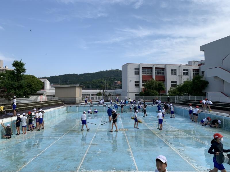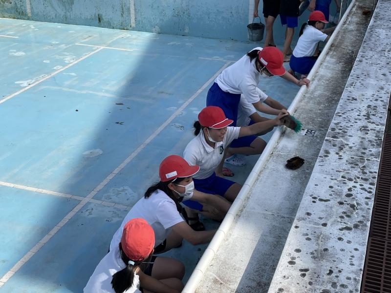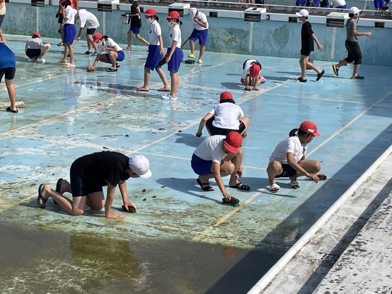 6時間目は6年生が大プール、小プールの中を綺麗にしてくれました。