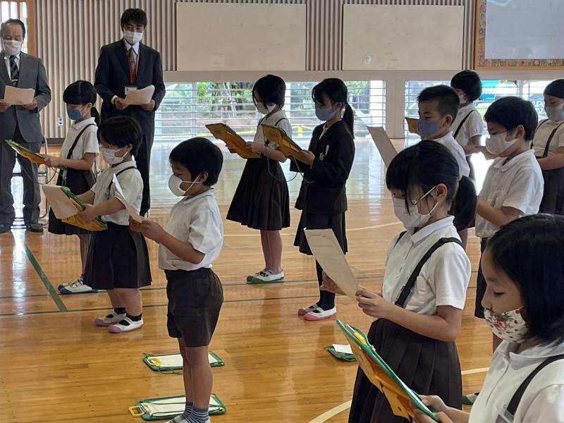 式の中で、代表児童による「子ども民生委員信条」の朗読や誓いの言葉の発表が行われました。
