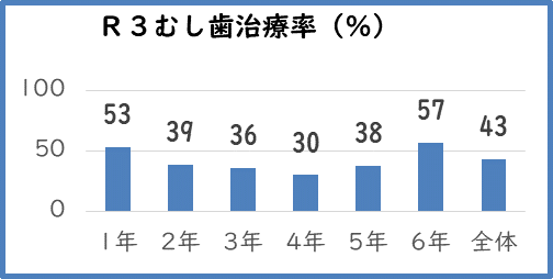 現在の本校児童の「むし歯の治療率」は、43%です。