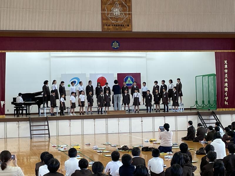 今日は授業参観を兼ねて、本渡南小学校の校内音楽会でした。4年生以上の8学級が、本校体育館で合唱を披露しました。