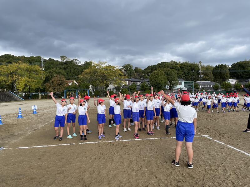 早朝からのグランド整備の甲斐もあって、みんな元気いっぱいに走り抜き、自己記録を大きく更新する児童もたくさんいたようです。グランド整備の時に、きれいな虹が架かる場面もあり、きっといい一日になると確信していました。