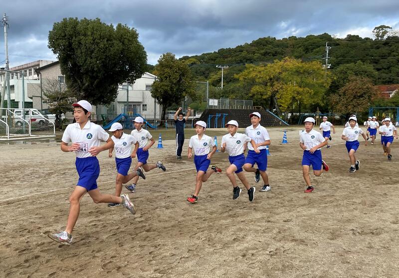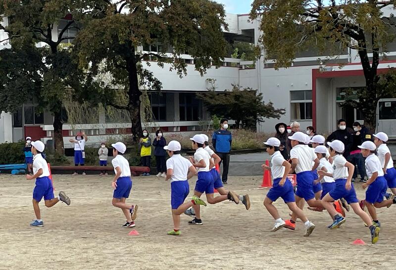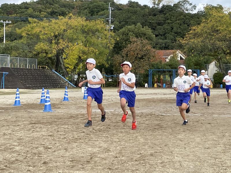 1年生が走る時、少しだけ雨が降りましたが、他の学年の時は、天気の影響もなく、みんな元気に完走できました。