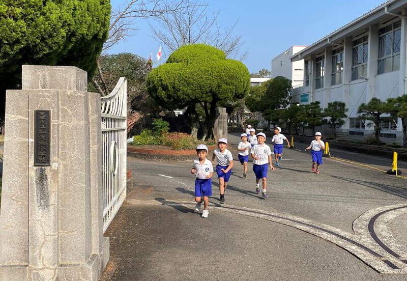 来週の校内マラソン大会に向けて、子供たちが練習を頑張っています。
