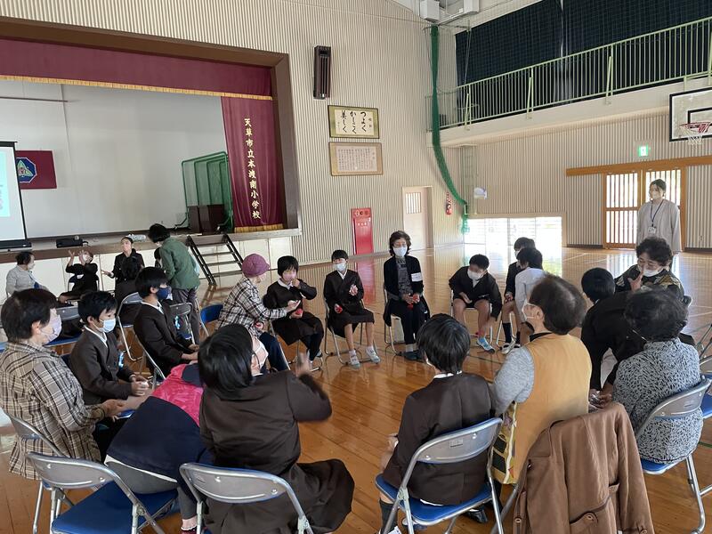 今年度、天草市子ども民生委員として活躍中の4年生が地域の高齢者の方々と交流会を行いました。