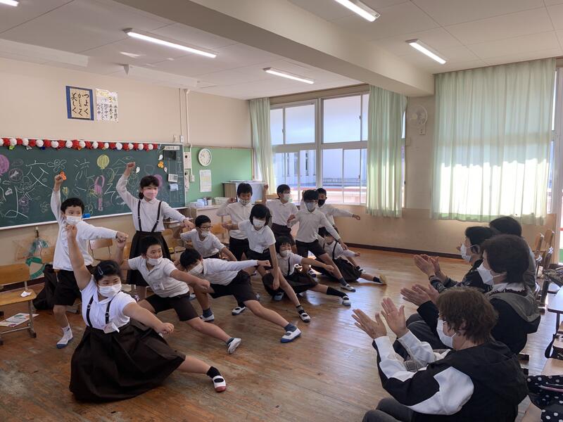 教室では、4年生が歌を歌ったり、ハイヤ踊りを披露したりしました。