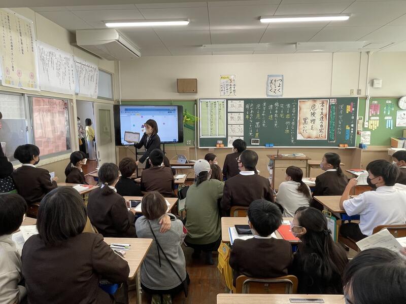 どのクラスもタブレットをうまく活用しながら学習していました。新しい授業スタイルに興味を持たれた保護者も多かったと思います。