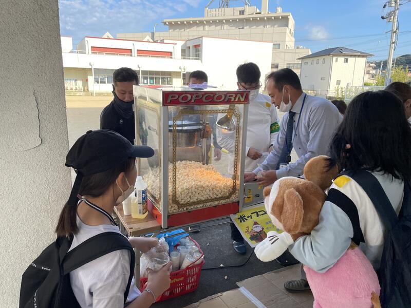ポップコーンの実演販売も好評で、長い行列もできました。