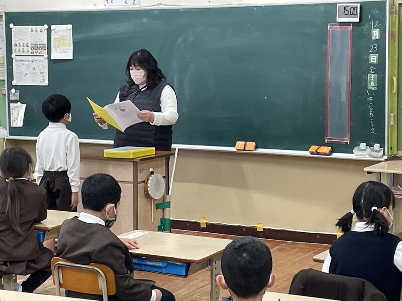 今回も、新型コロナの影響で、放送による終業式でした。始めに、低中高学年から3人の代表児童が2学期を振り返る作文を発表しました。その後、校長の話、冬休みのくらしについて、生徒指導担当、養護教諭が話をしました。