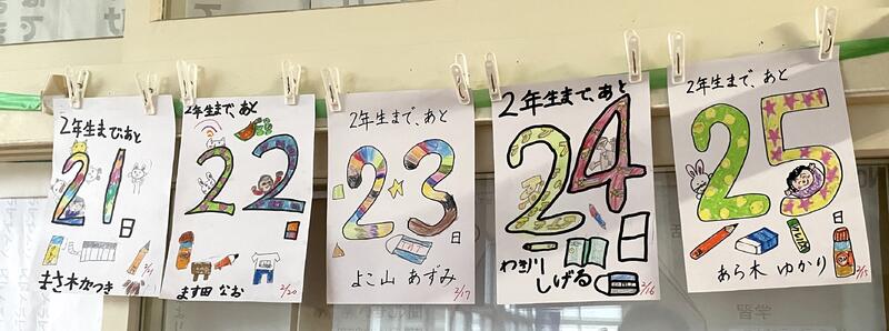 1年生の廊下には、修了式までのカウントダウンが掲示されていました。