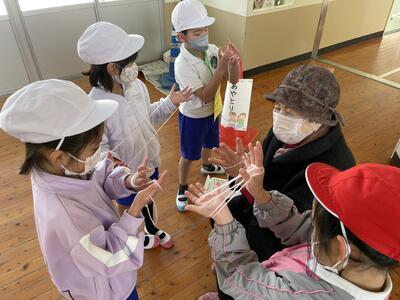 子どもたちは、今まで知らなかった遊び方や遊びのコツを教えてもらいながら、楽しそうに活動していました。老人会の方々も「昔を思い出しながら、子どもたちと遊べて楽しかった。」とおっしゃっていました。