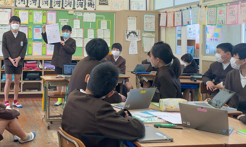 人間が地球環境へどのような影響を与えているのか、また、よくない影響を与えている事例については今後どうしていけばよいのか、様々な方法を使って調べています。調べたことをスライドにまとめて発表することがゴールです。