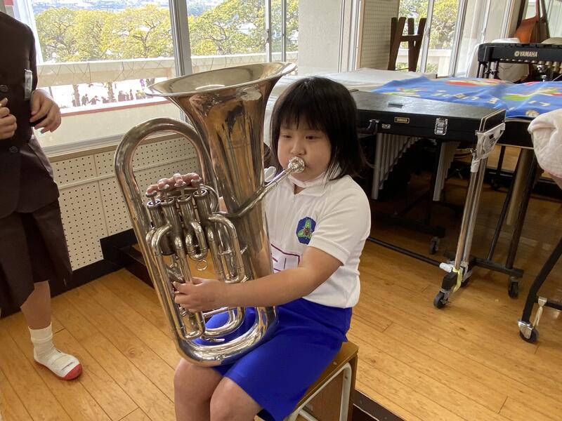 かっこいい演奏に感激し、今週から始まった体験に、やる気満々で挑んでいました