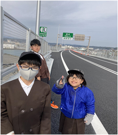 6年生は、天草未来大橋開通記念の一環で、
