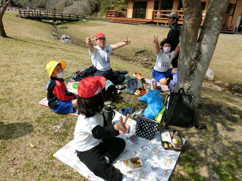 食後はゆっくり日向ぼっこをする人や友達と話をする人、鬼ごっこをする人など