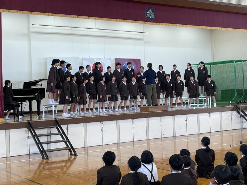 またこの日は、本渡中学校から音楽の先生の福嶌先生に来ていただき、全クラスの合唱を聴いていただきました。最後に、講評の中でたくさん褒めていただきました。各学級とも、とても自信になりました。福嶌先生、本当にありがとうございました。