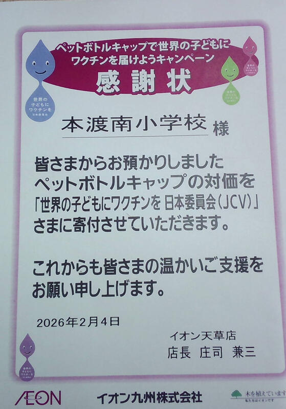 ペットボトルキャップ回収の感謝状について