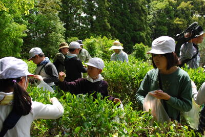 茶摘み、茶もみ、茶煎り体験 5月8日