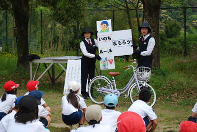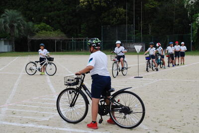 安全な道路の横断の仕方や自転車の簡単な整備点検の仕方と正しい自転車の乗り方について理解し、やってみることを目的として、交通教室を実施しました。当日は、交通安全協会の方お2人から、指導をしてきただきました。子どもたちは、真剣に話を聞き、練習をすることができました。
