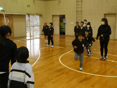 冬は寒さもあり、体が縮こまってしまいます。適度な運動が大事です。今日は、縦割り班活動で、長縄跳びに挑戦しました。1回跳んだら抜けていく8の字跳びを各班でしました。低学年は、入るタイミングが難しかったようですが、上級生に教えてもらいながら、頑張っていました。