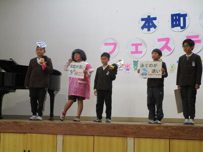 1月25日(日)に本町っ子フェスティバル(学習発表会)を開催しました。寒い中でしたが、保護者の皆様、地域の皆様など多くの方がご来場くださいました。子どもたちもたくさんの方々に見ていただくということで、大張り切り。各学年で学んだことを劇にしたり、プレゼンを通して発表したりして学びの発信をしました。緊張もしたようですが、みんな堂々として、とても立派でした。